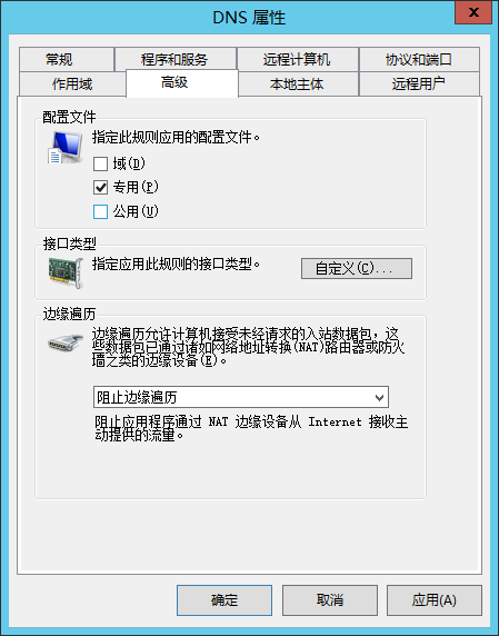 例如如下DHCP的规则,需要在已经自动启用的情况下,补充设置LAN接口的作用域仅对专用网络有效: