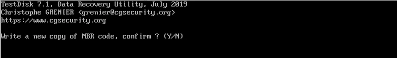 6、testdisk会让你确认两次。按Y两次后,完成写入。